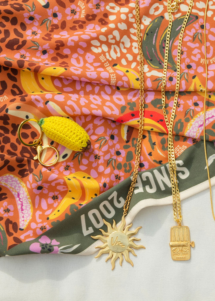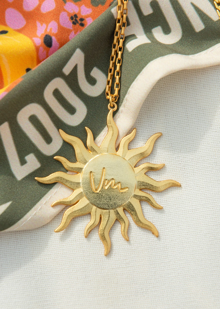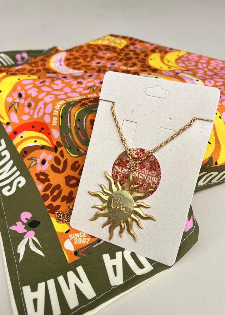 El Collar Largo Sol es una joya que evoca el trópico, la naturaleza y la esencia del alma. Presenta un dije detallado de Sol y está fabricado en Zamak (aleación de zinc, cobre y magnesio) con un baño de oro de 24k de alta calidad. Diseño exclusivo y Hecho en Colombia.