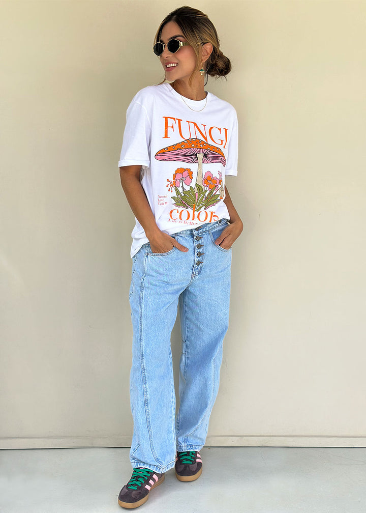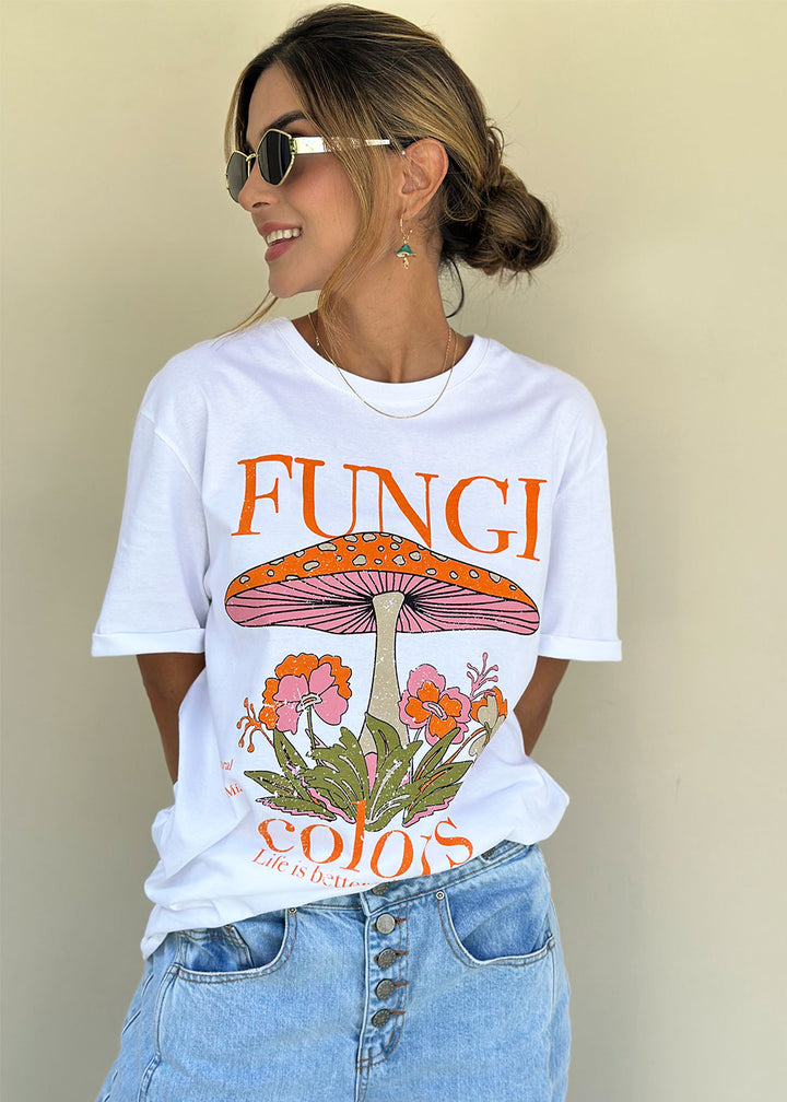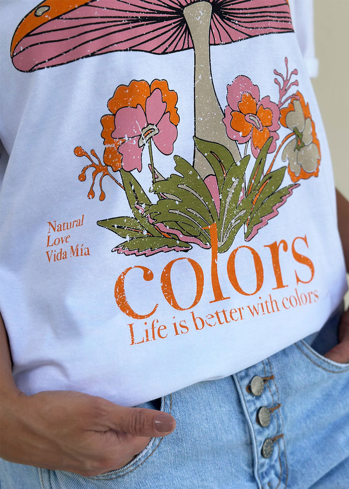 Ana Ivory Cotton T-Shirt with Colorful Fungi Print