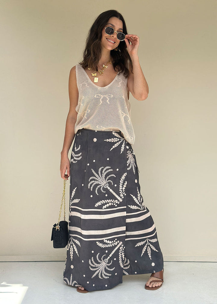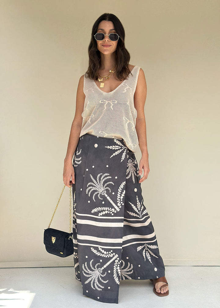 A chic sleeveless top with delicate bow details, crafted in soft beige knit. Designed with front and back V-necklines and wide armholes for a flattering drape. Feminine and versatile, it’s perfect for warm days or layered looks.