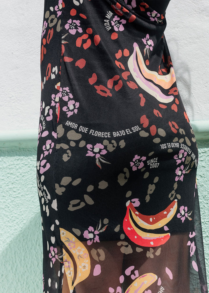 Pimienta Tropical Printed Black Mesh Maxi Dress