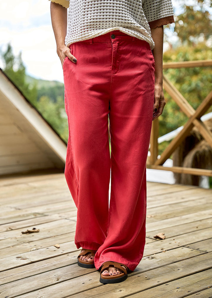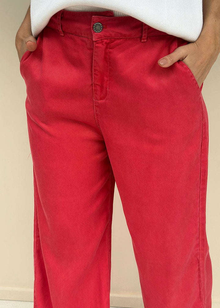 Magenta Mid-Rise Straight-Leg Tencel Pants