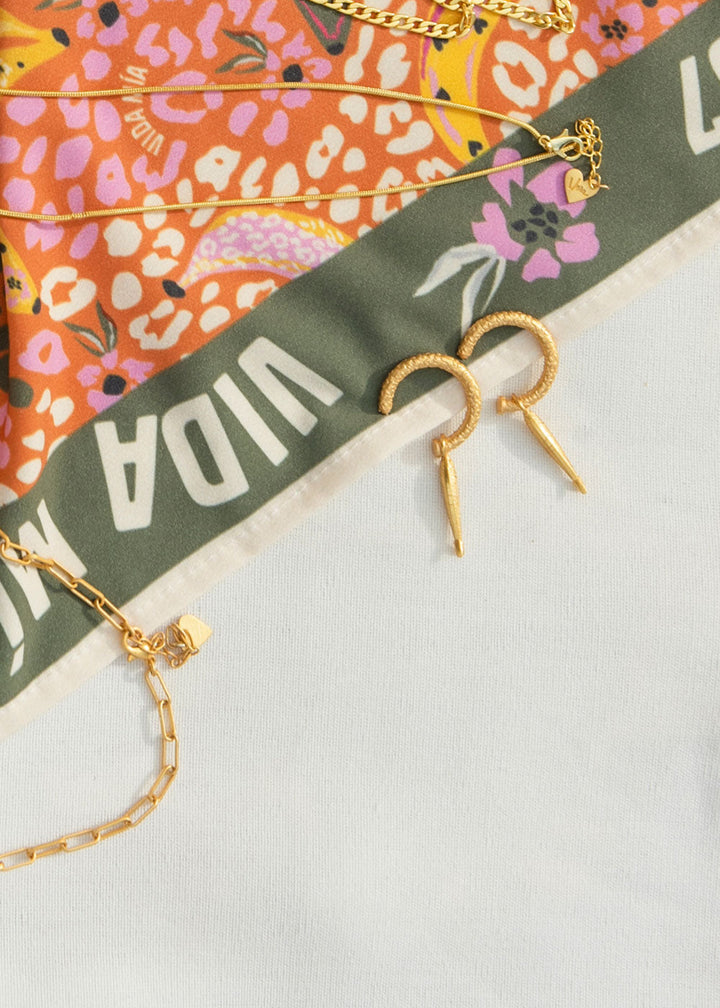 The Sardina Hoop Earrings feature a charming Sardine pendant, evoking the sea and the tropical essence of the collection. Classic hoops crafted from Zamak with a luxurious 24k gold plating. They are a fun, chic statement piece, ideal for warm weather or resort style. Designed in Colombia.